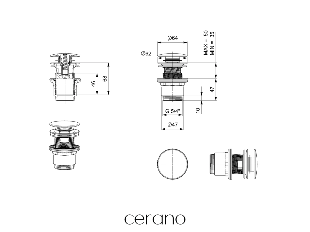 Výrobek je vybaven standardním závitovým připojením 5/4", které zajišťuje kompatibilitu umyvadlových výpustí a sifonů a zároveň usnadňuje jejich vzájemné připojení.