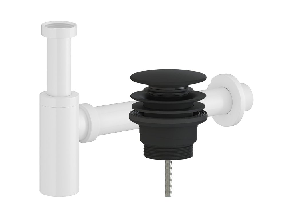 CERANO - Sifon umyvadlový - 5/4" - DN40/300mm - bílá lesklá s výpustí click-clack - univerzální - plast - černá matná