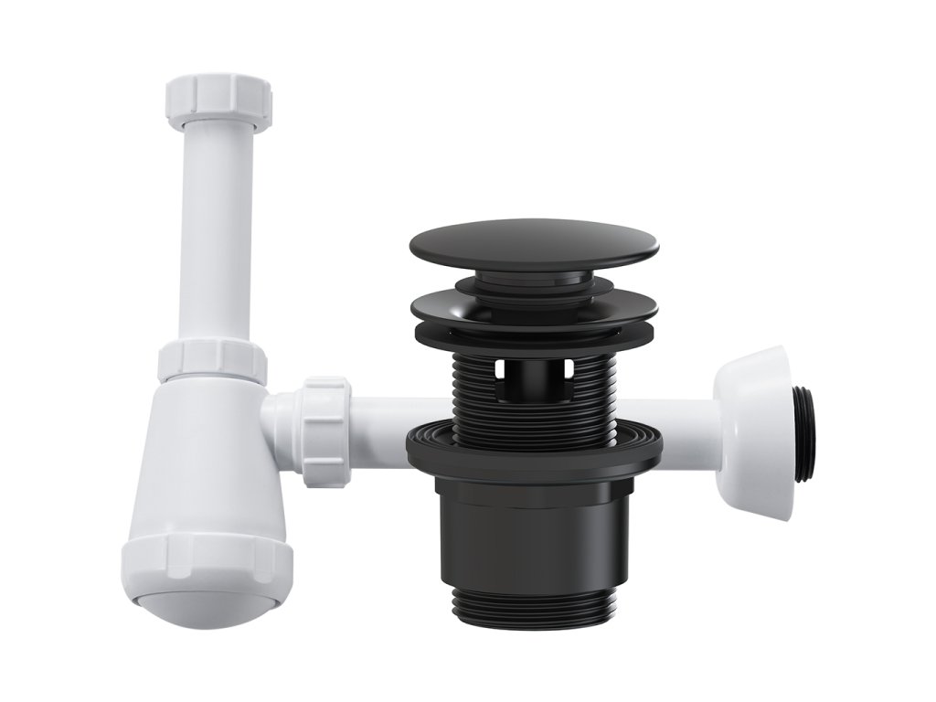 CERANO - Sifon umyvadlový - 5/4" - DN32-50/250 mm - bílá lesklá s výpustí click-clack s přepadem - plast - 35/50mm - černá matná