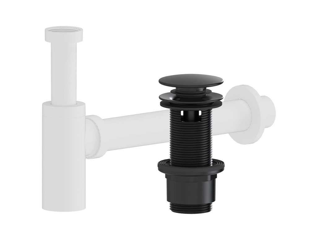 CERANO - Sifon umyvadlový - 5/4" - DN40/300 mm - bílá matná s výpustí click-clack s přepadem - plast - 67/82mm - černá matná