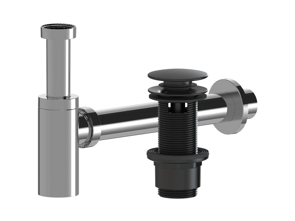CERANO - Sifon umyvadlový - 5/4" - DN40/300mm - chrom s výpustí click-clack s přepadem - plast - 67/82mm - černá matná