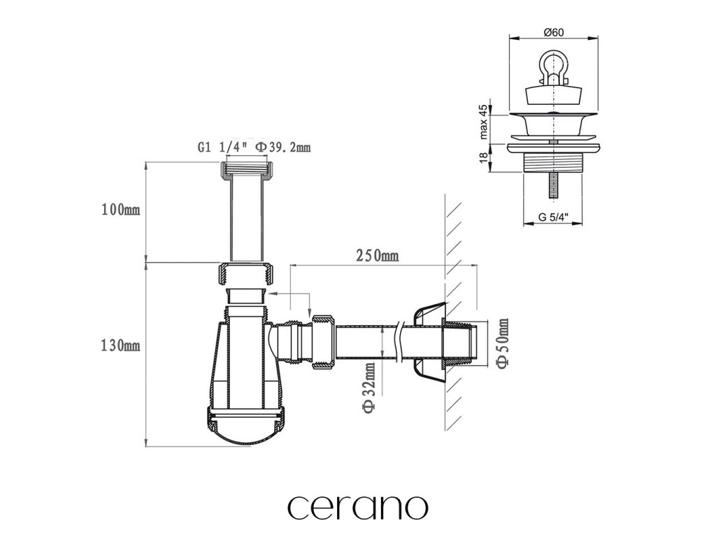 CERANO - Sifon umyvadlový - plast - DN32-50/250 mm - bílá lesklá s výpustí - nerez