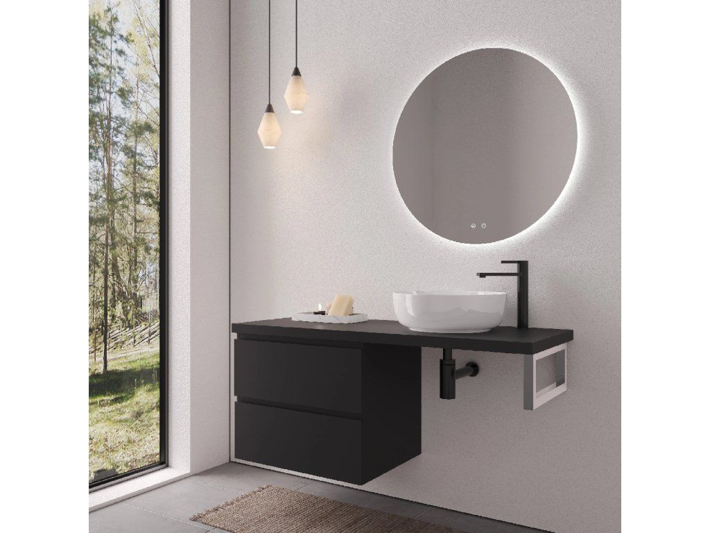 CERANO - Deska pod umyvadlo Navira Pro - 121x46,5x3,6 cm - skříňka Carole 59 cm - černá matná - konzole chrom