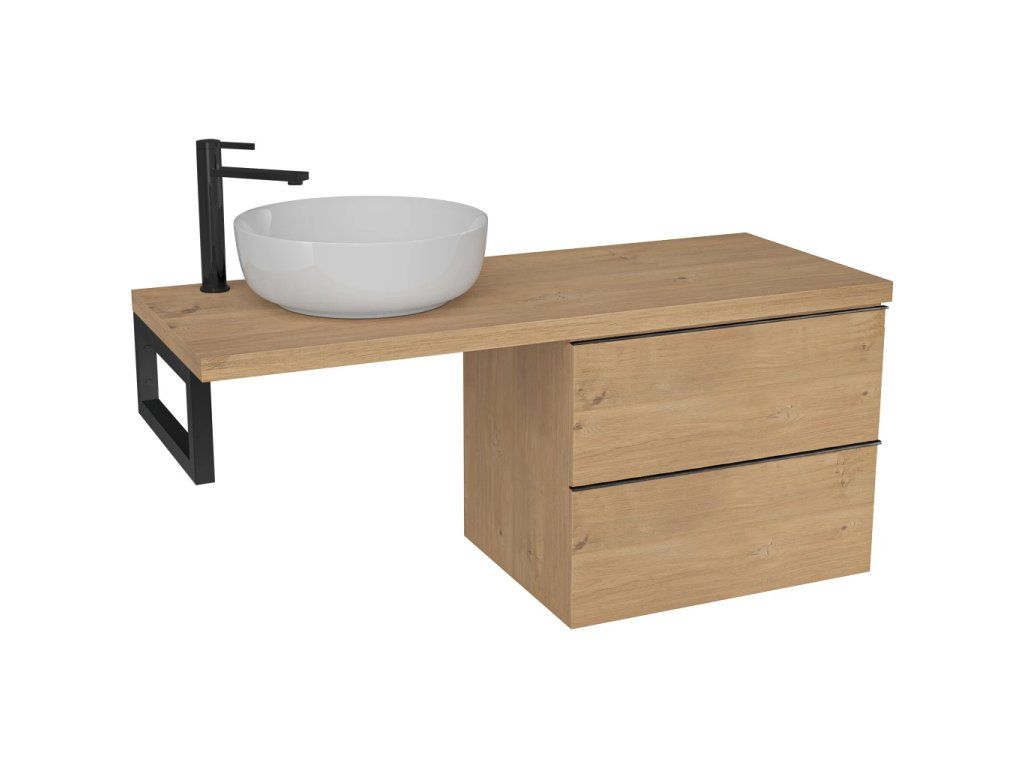 CERANO - Deska pod umyvadlo Navira Pro - 121x46,5x3,6 cm - skříňka Velora 59 cm - dub medový, černá úchytka - konzole černá