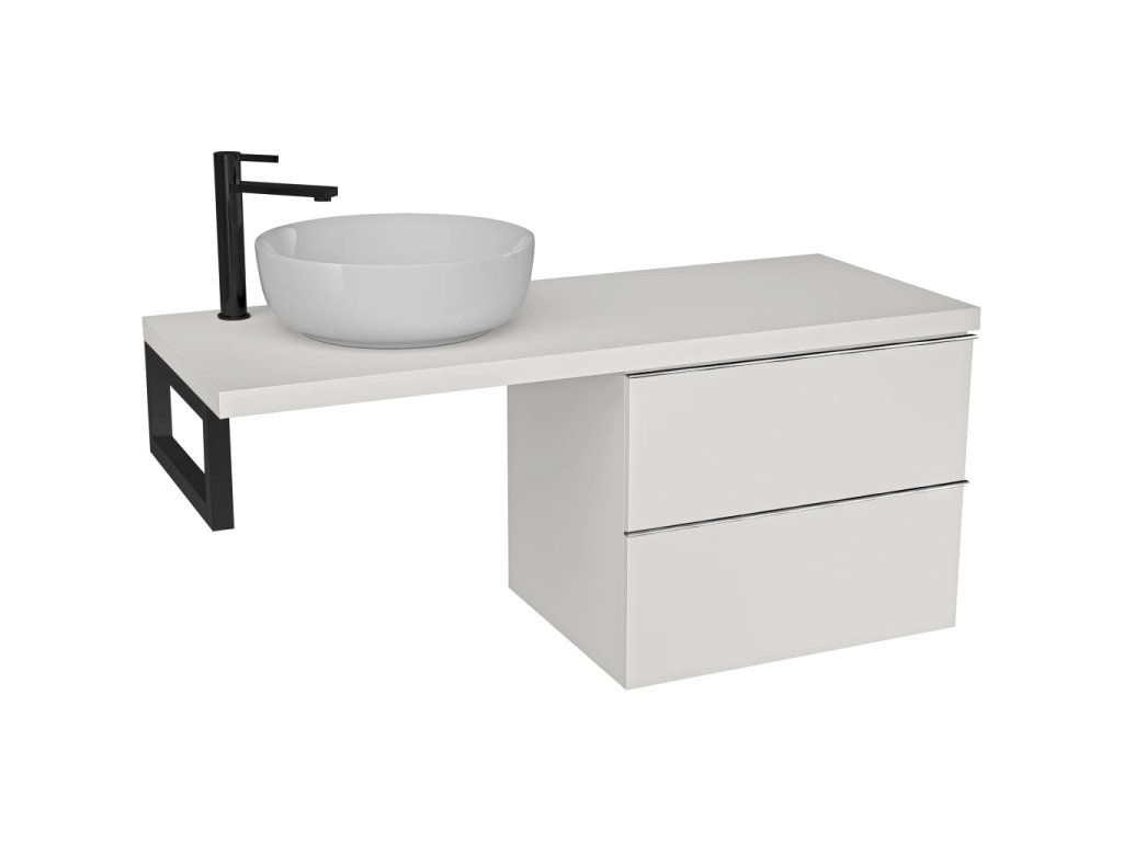 CERANO - Deska pod umyvadlo Navira Pro - 141x46,5x3,6 cm - skříňka Velora 69 cm - bílá matná, chromová úchytka - konzole černá