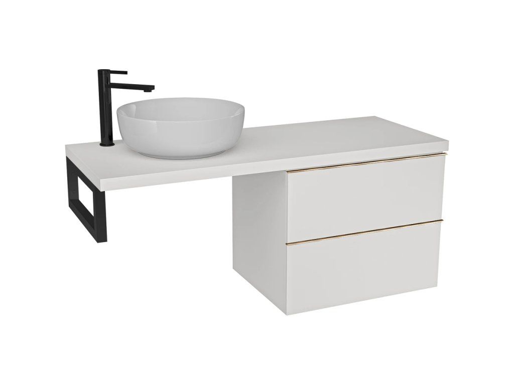CERANO - Deska pod umyvadlo Navira Pro - 161x46,5x3,6 cm - skříňka Velora 79 cm - bílá matná, zlatá úchytka - konzole černá