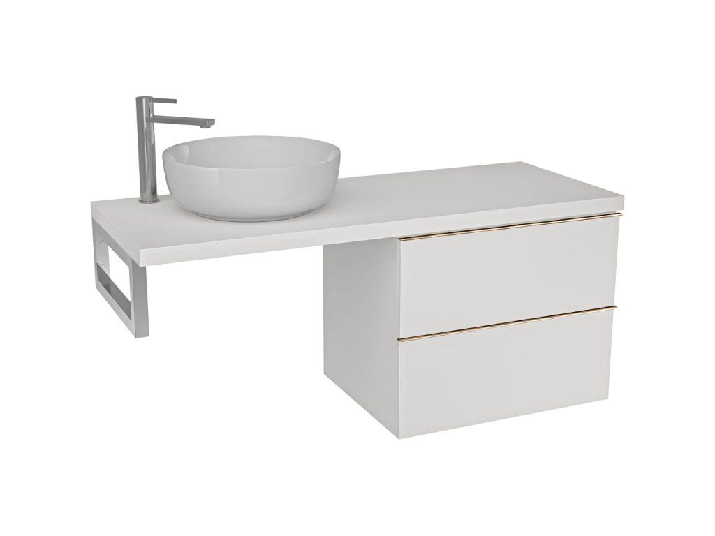 CERANO - Deska pod umyvadlo Navira Pro - 161x46,5x3,6 cm - skříňka Velora 79 cm - bílá matná, zlatá úchytka - konzole chrom