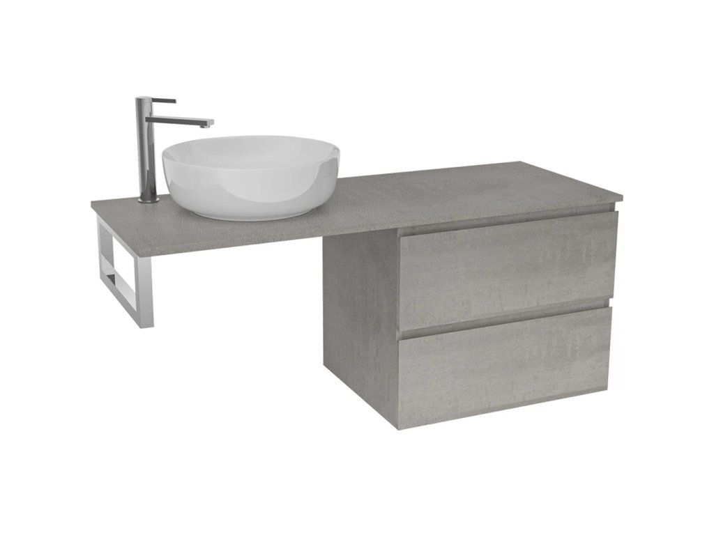 CERANO - Deska pod umyvadlo Navira Slim - 121x46,5x1,8 cm - skříňka Carole 59 cm - betonově šedá - konzole chrom