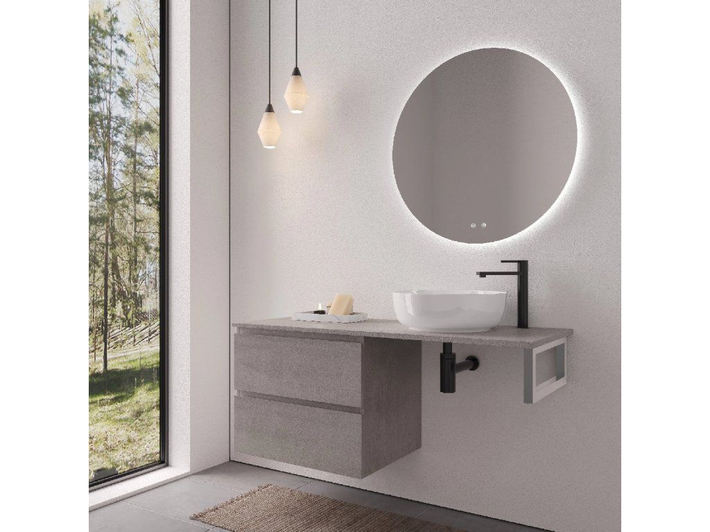CERANO - Deska pod umyvadlo Navira Slim - 141x46,5x1,8 cm - skříňka Carole 69 cm - betonově šedá - konzole chrom