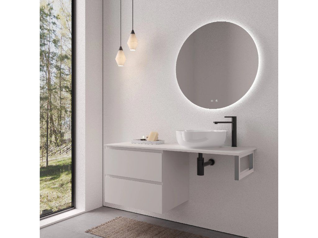 CERANO - Deska pod umyvadlo Navira Slim - 141x46,5x1,8 cm - skříňka Carole 69 cm - bílá matná - konzole chrom