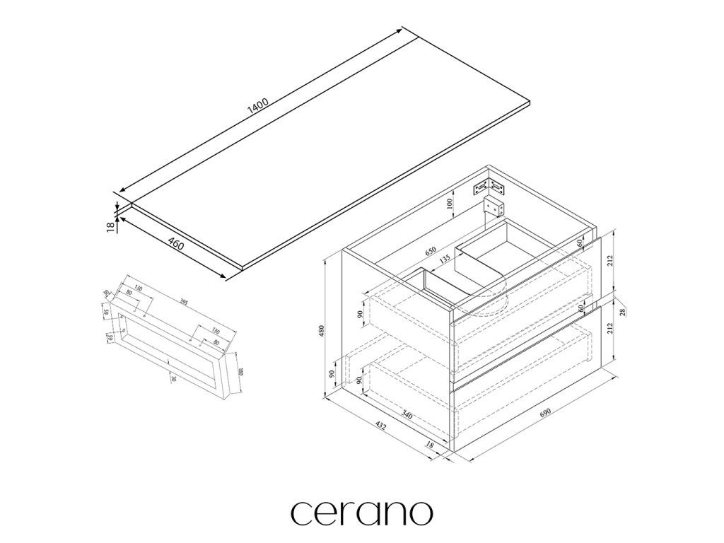 V rámci této série nabízíme širokou škálu rozměrů, abychom uspokojili různé potřeby našich zákazníků. Všechny koupelnové skříňky značky Cerano jsou navrženy tak, aby byly plně kompatibilní s deskami a umyvadly Cerano ve stejných rozměrech, což zajišťuje bezproblémovou instalaci a dokonalé sladění.