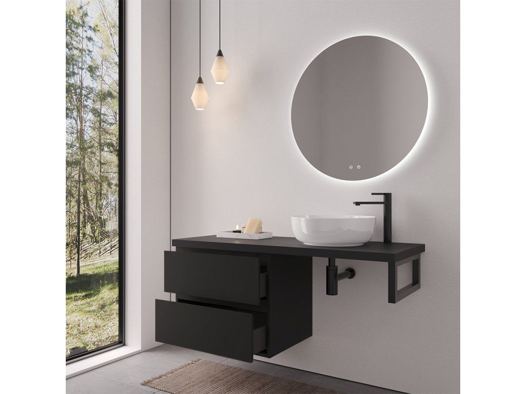 CERANO - Koupelnová skříňka Carole - černá matná + deska pod umyvadlo Navira Pro - 36 mm + konzole černá - 140x46x56,6 cm
