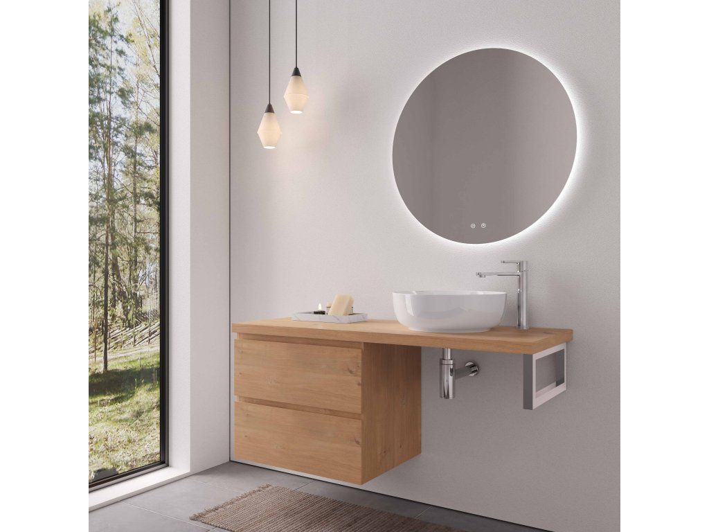CERANO - Koupelnová skříňka Carole - dub medový + deska pod umyvadlo Navira Pro - 36 mm + konzole chrom - 120x46x56,6 cm