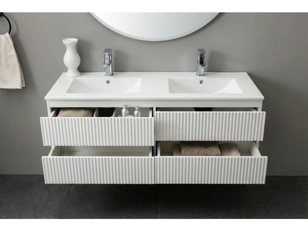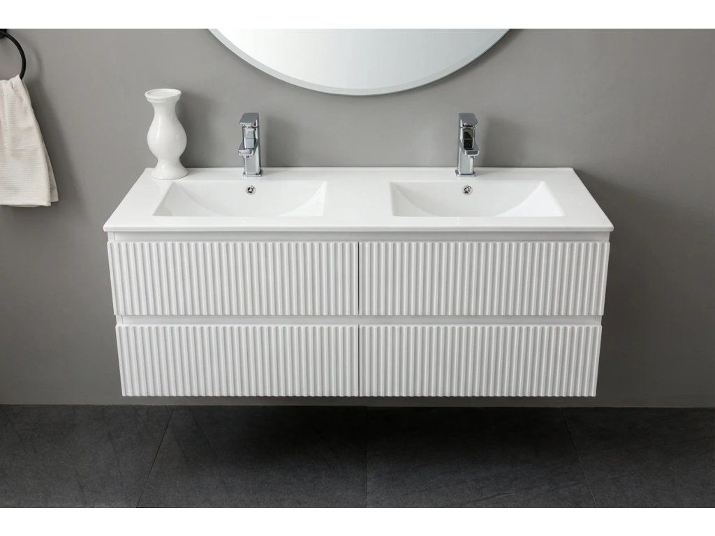 CERANO - Koupelnová skříňka pod umyvadlo Carole - bílá matná rýhovaná - 119x48x45 cm