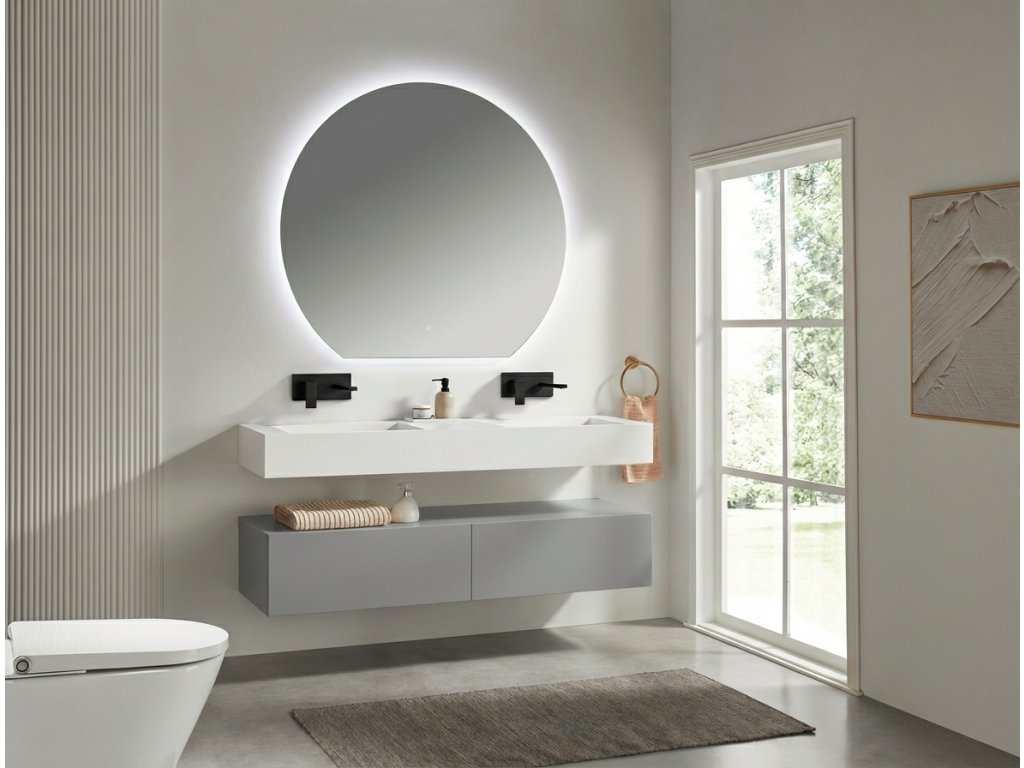 Koupelnové skříňky jsou vyrobeny z MDF lamina (středně hustá dřevovláknitá deska) s nalisovanou melaminovou fólií, která je odolná vůči vlhkosti, poškrábání, UV záření a běžným čisticím prostředkům. Povrch je hladký, tvrdý, homogenní a snadno se čistí. MDF desky se nekroutí jako masivní dřevo. Pokud dojde k mechanickému narušení laminace, samotné MDF jádro může navlhnout.