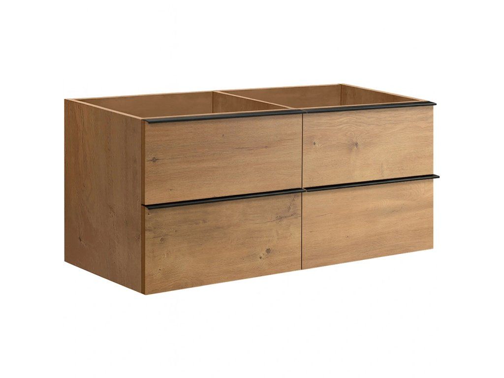CERANO - Koupelnová skříňka pod umyvadlo s úchytkou Velora - dub medový, černá úchytka - 138x53x46,5 cm