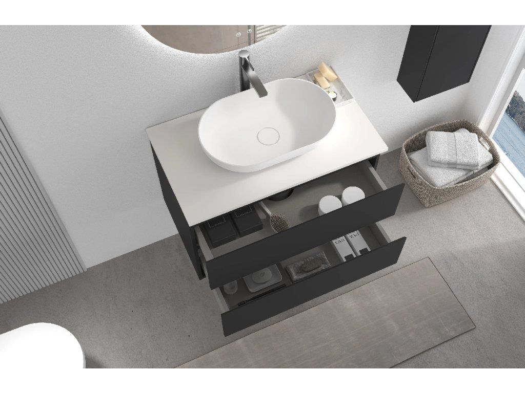 CERANO - Koupelnová skříňka Carole - černá matná + deska pod umyvadlo z lit. mramoru Elanys - 12 mm - bílá matná - 80x49,2x46 cm