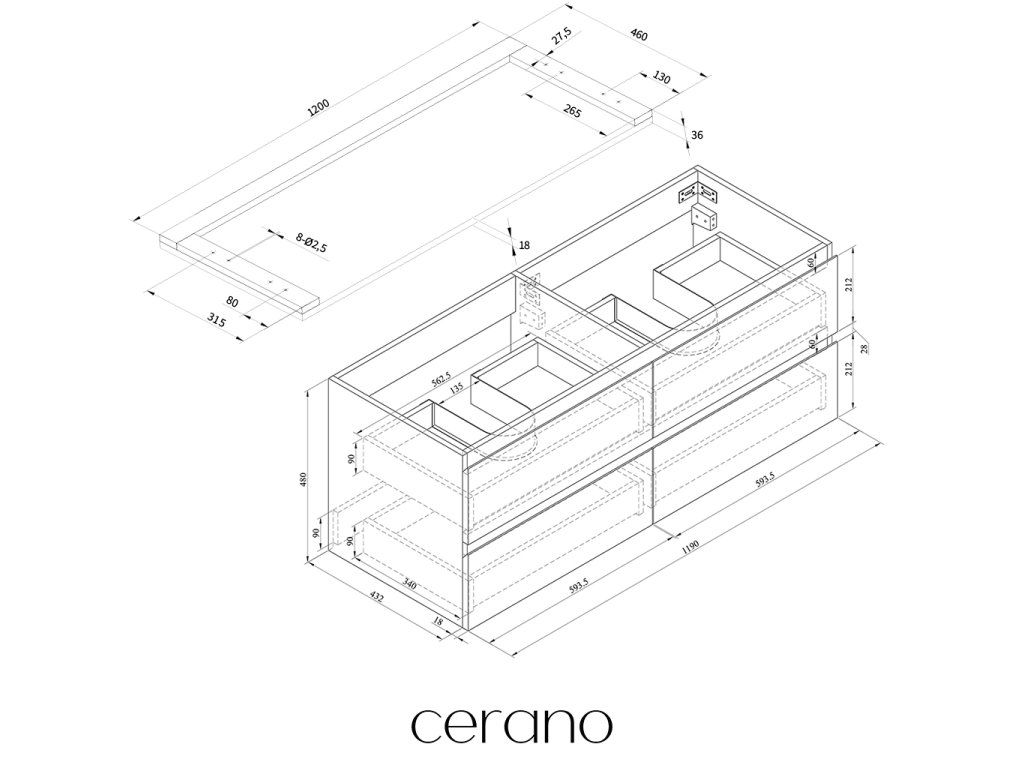 V rámci této série nabízíme širokou škálu rozměrů, abychom uspokojili různé potřeby našich zákazníků. Všechny koupelnové skříňky značky Cerano jsou navrženy tak, aby byly plně kompatibilní s deskami a umyvadly Cerano ve stejných rozměrech, což zajišťuje bezproblémovou instalaci a dokonalé sladění.