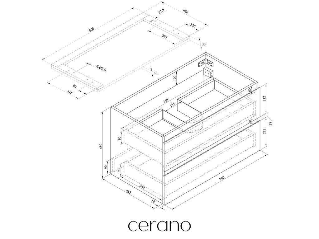 V rámci této série nabízíme širokou škálu rozměrů, abychom uspokojili různé potřeby našich zákazníků. Všechny koupelnové skříňky značky Cerano jsou navrženy tak, aby byly plně kompatibilní s deskami a umyvadly Cerano ve stejných rozměrech, což zajišťuje bezproblémovou instalaci a dokonalé sladění.