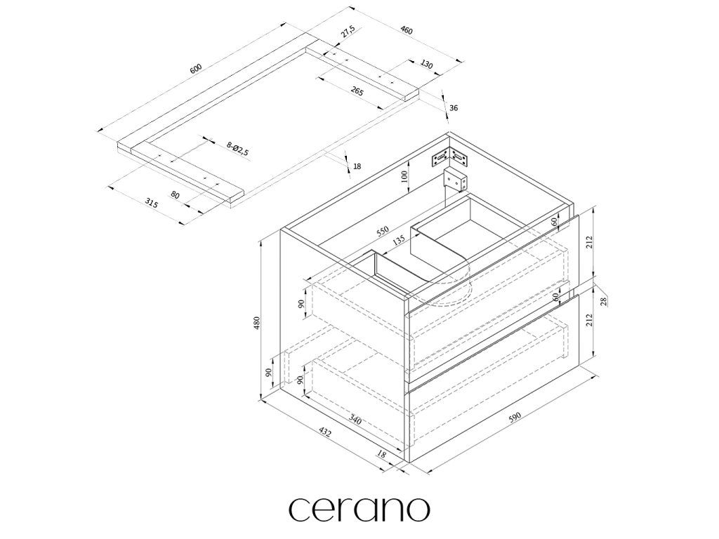 V rámci této série nabízíme širokou škálu rozměrů, abychom uspokojili různé potřeby našich zákazníků. Všechny koupelnové skříňky značky Cerano jsou navrženy tak, aby byly plně kompatibilní s deskami a umyvadly Cerano ve stejných rozměrech, což zajišťuje bezproblémovou instalaci a dokonalé sladění.
