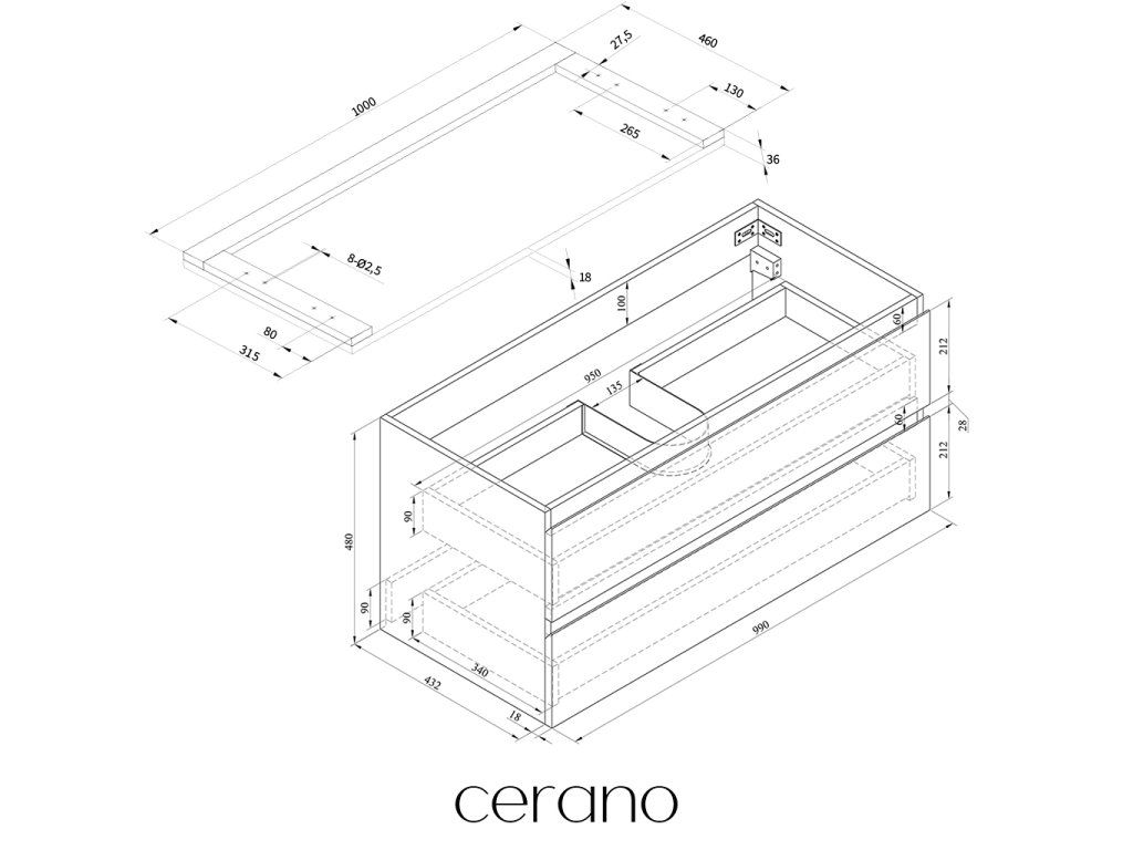 V rámci této série nabízíme širokou škálu rozměrů, abychom uspokojili různé potřeby našich zákazníků. Všechny koupelnové skříňky značky Cerano jsou navrženy tak, aby byly plně kompatibilní s deskami a umyvadly Cerano ve stejných rozměrech, což zajišťuje bezproblémovou instalaci a dokonalé sladění.