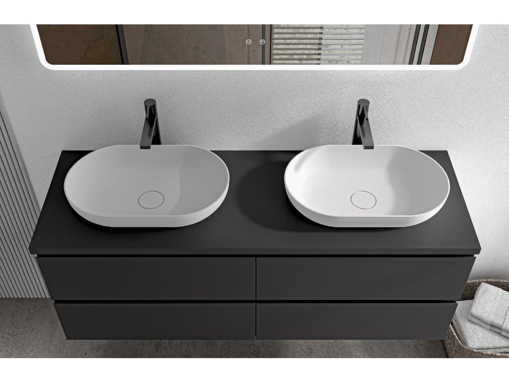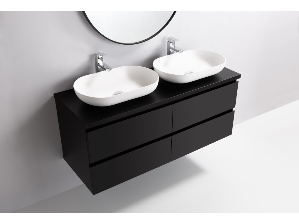 CERANO - Koupelnová skříňka Carole s deskou pod umyvadlo - 36 mm - černá matná - 141x51,6x46,5 cm