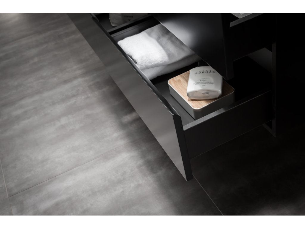Koupelnové skříňky jsou vyrobeny z MDF lamina (středně hustá dřevovláknitá deska) s nalisovanou melaminovou fólií, která je odolná vůči vlhkosti, poškrábání, UV záření a běžným čisticím prostředkům. Povrch je hladký, tvrdý, homogenní a snadno se čistí. MDF desky se nekroutí jako masivní dřevo. Pokud dojde k mechanickému narušení laminace, samotné MDF jádro může navlhnout.