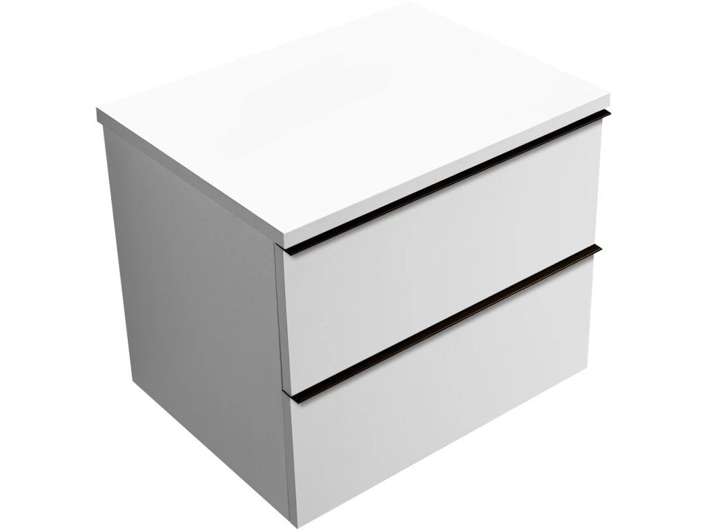 CERANO - Koupelnová skříňka pod umyvadlo s úchytkou/deskou pod umyvadlo Velora - 36 mm - bílá matná, černá úchytka - 69x53x46 cm