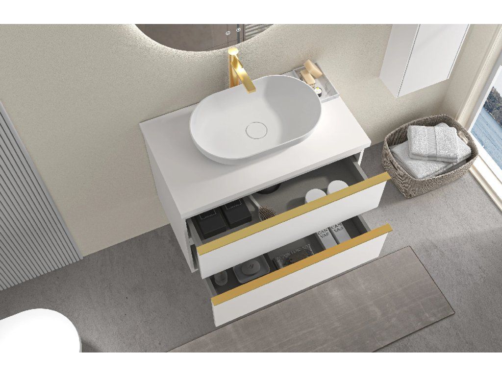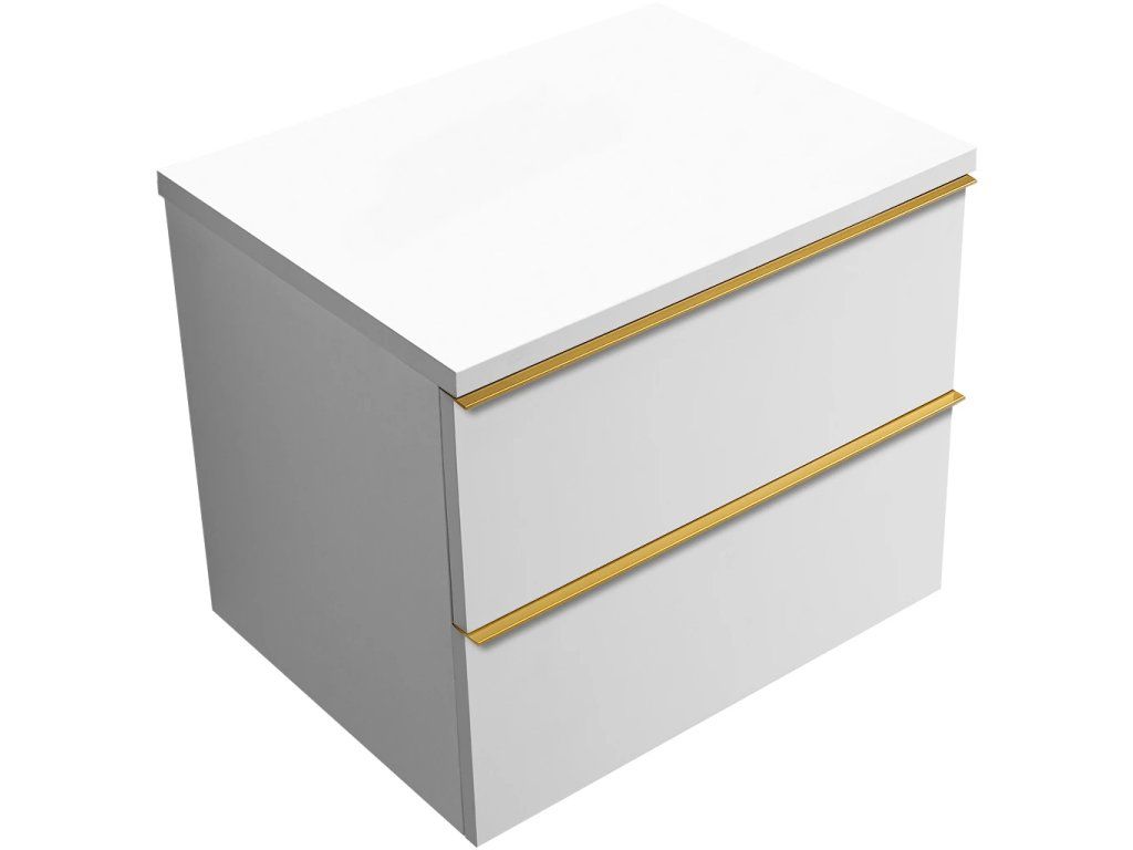 CERANO - Koupelnová skříňka pod umyvadlo s úchytkou/deskou pod umyvadlo Velora - 36 mm - bílá matná, zlatá úchytka - 69x53x46 cm