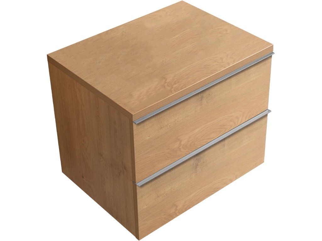 CERANO - Koupelnová skříňka pod umyvadlo s úchytkou/deskou pod umyvadlo Velora - 36 mm - dub medový, chromová úchytka - 69x53x46 cm