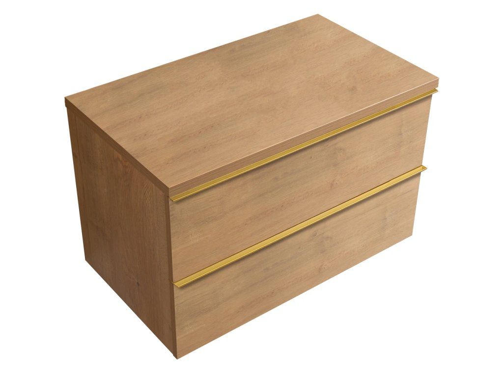 CERANO - Koupelnová skříňka pod umyvadlo s úchytkou/deskou pod umyvadlo Velora - 36 mm - dub medový, zlatá úchytka - 99x53x46 cm