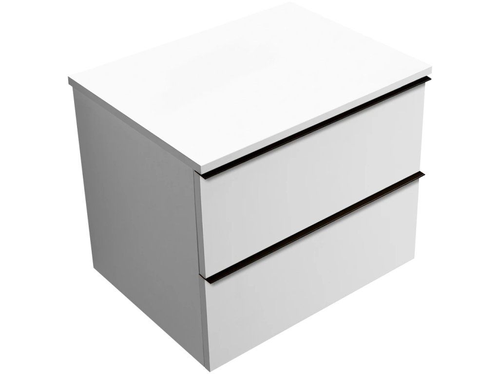 CERANO - Koupelnová skříňka Velora - bílá matná, úchytka černá + deska z lit. mramoru Elanys - 12 mm - bílá matná - 70x54,2x46,5 cm
