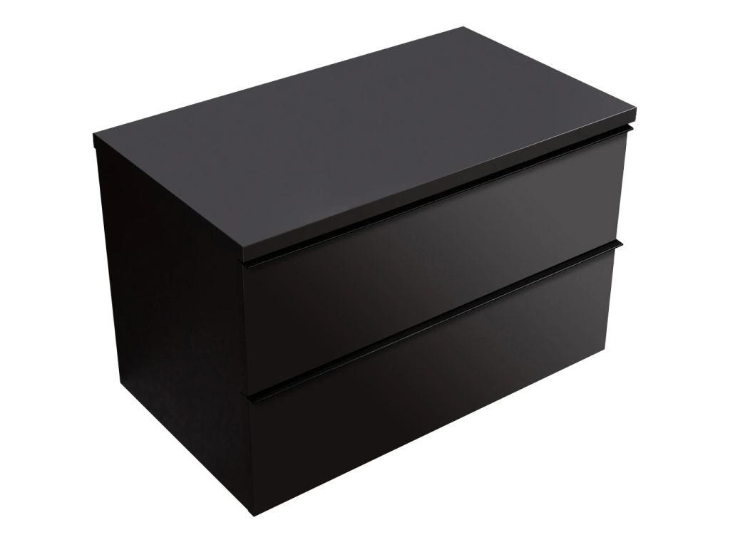 CERANO - Koupelnová skříňka Velora - černá matná, úchytka černá + deska pod umyvadlo Navira Pro - 36 mm - 80x56,6x46,5 cm