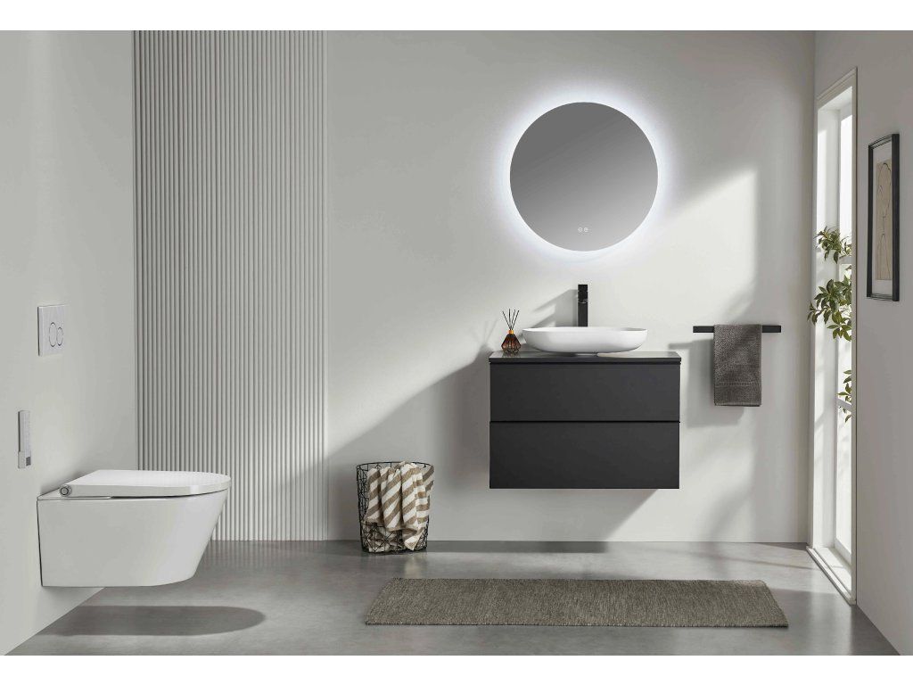 CERANO - Koupelnová skříňka Velora - černá matná, úchytka černá + deska pod umyvadlo Navira Slim - 18 mm - 60x54,8x46,5 cm