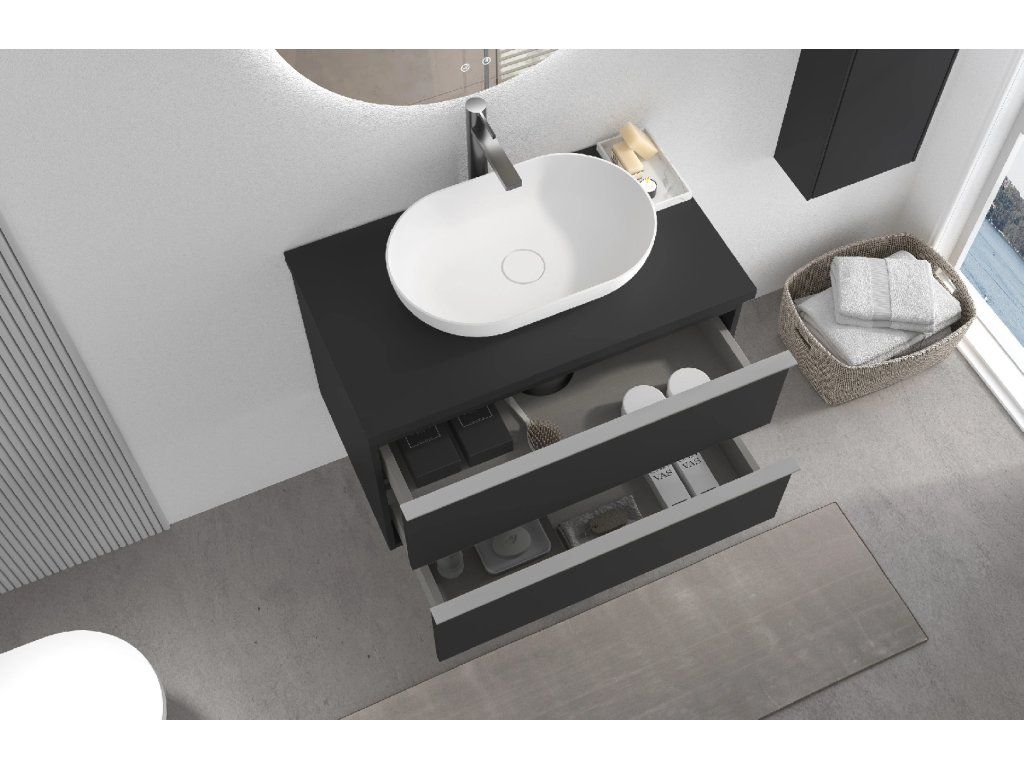 CERANO - Koupelnová skříňka Velora - černá matná, úchytka chromová + deska pod umyvadlo Navira Pro - 36 mm - 80x56,6x46,5 cm