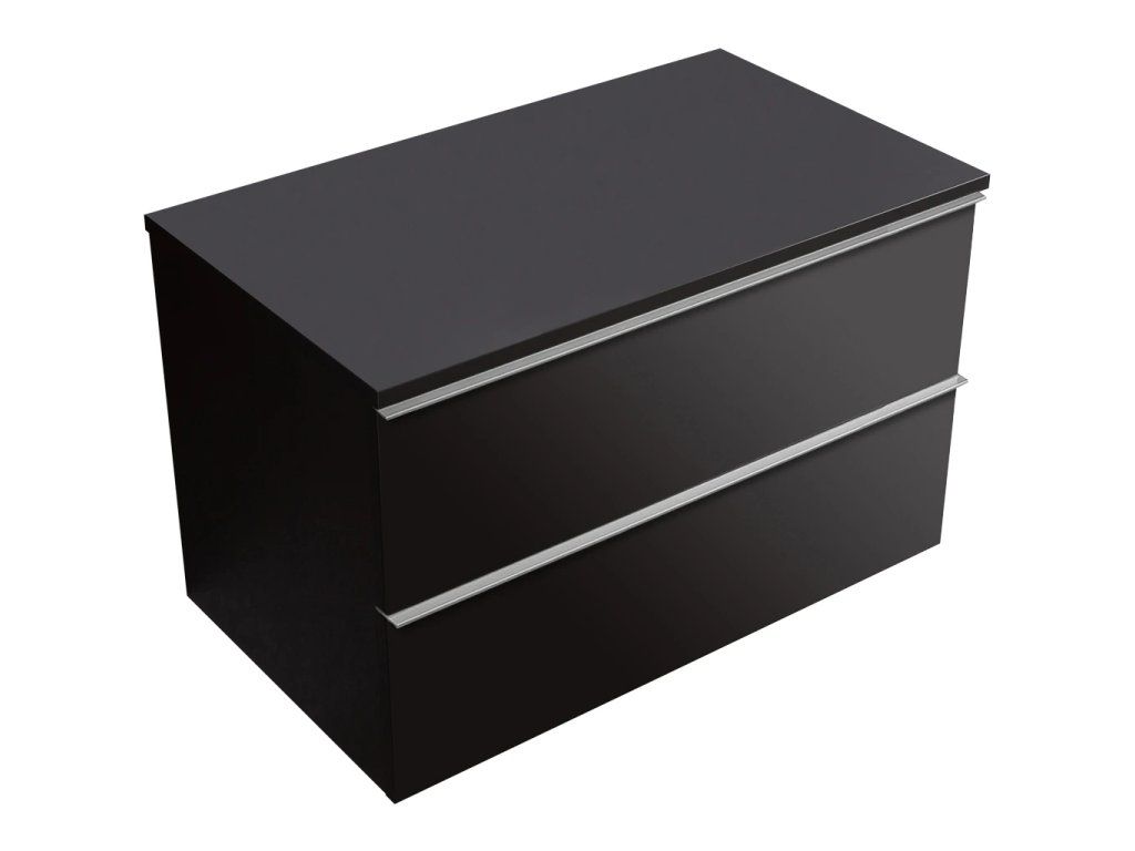 CERANO - Koupelnová skříňka Velora - černá matná, úchytka chromová + deska pod umyvadlo Navira Slim - 18 mm - 80x54,8x46,5 cm