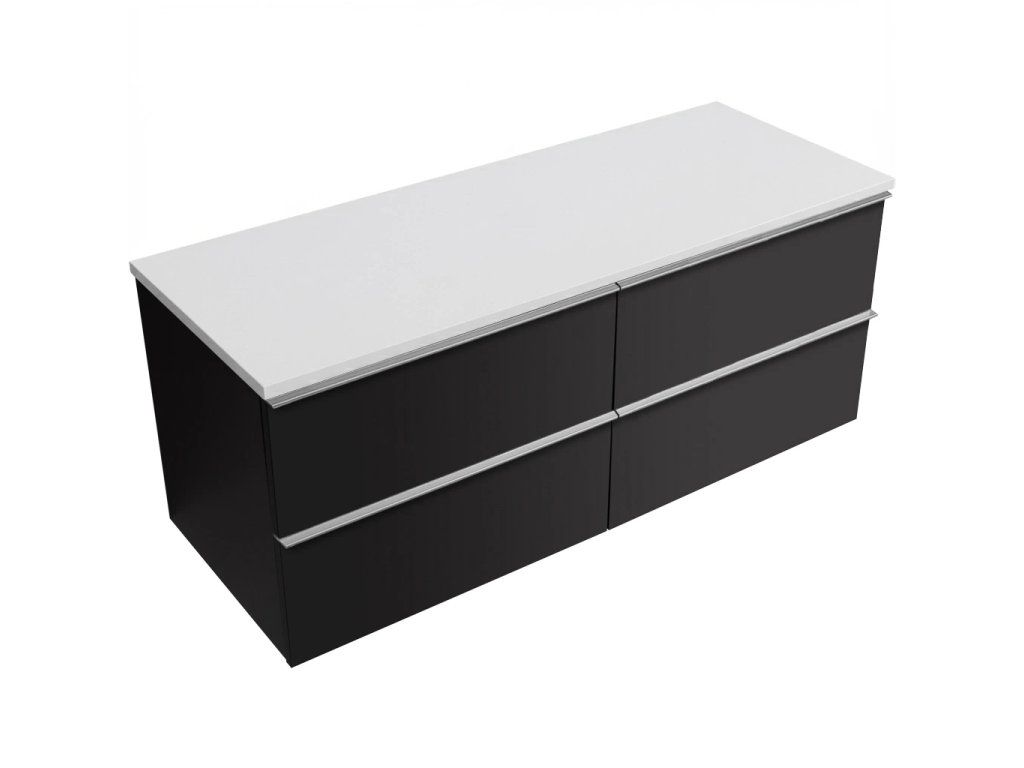 CERANO - Koupelnová skříňka Velora - černá matná, úchytka chromová + deska z lit. mramoru Elanys - 12 mm - bílá matná - 160x54,2x46,5 cm