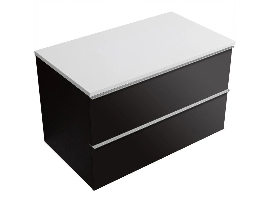 CERANO - Koupelnová skříňka Velora - černá matná, úchytka chromová + deska z lit. mramoru Elanys - 12 mm - bílá matná - 80x54,2x46,5 cm
