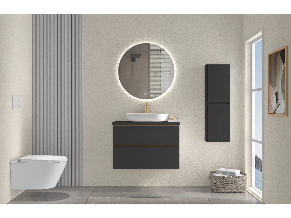CERANO - Koupelnová skříňka Velora - černá matná, úchytka zlatá + deska pod umyvadlo Navira Pro - 36 mm - 80x56,6x46,5 cm