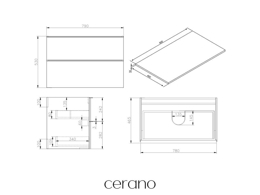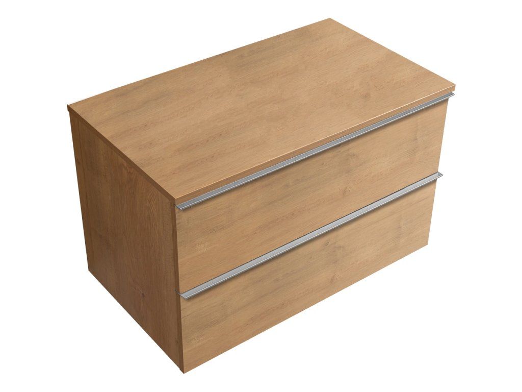 CERANO - Koupelnová skříňka Velora - dub medový, úchytka chromová + deska pod umyvadlo Navira Slim - 18 mm - 80x54,8x46,5 cm
