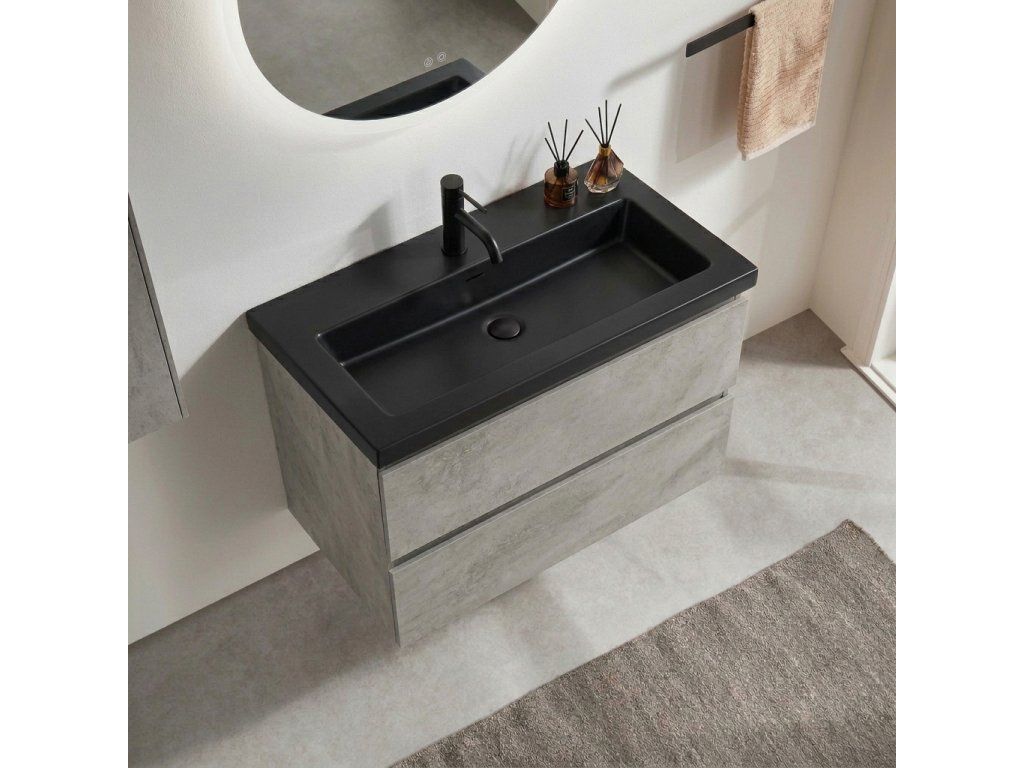 CERANO - Koupelnová skříňka Carole - betonově šedá + umyvadlo z lit. mramoru Ovo - černá matná - 61x49,5x46,5 cm