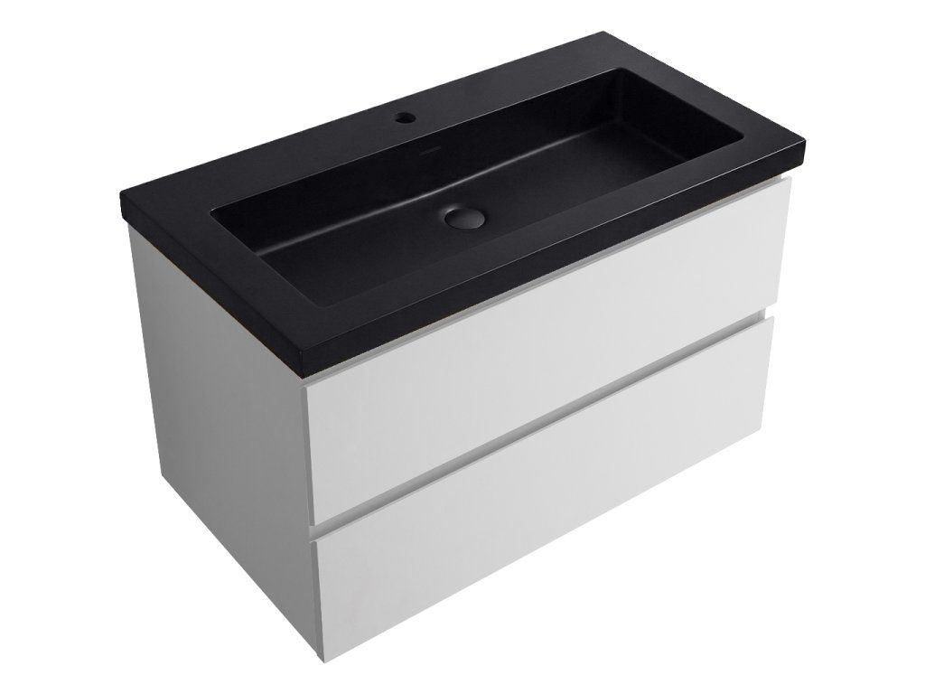 CERANO - Koupelnová skříňka Carole - bílá matná + umyvadlo z lit. mramoru Ovo - černá matná - 101x49,5x46,5 cm
