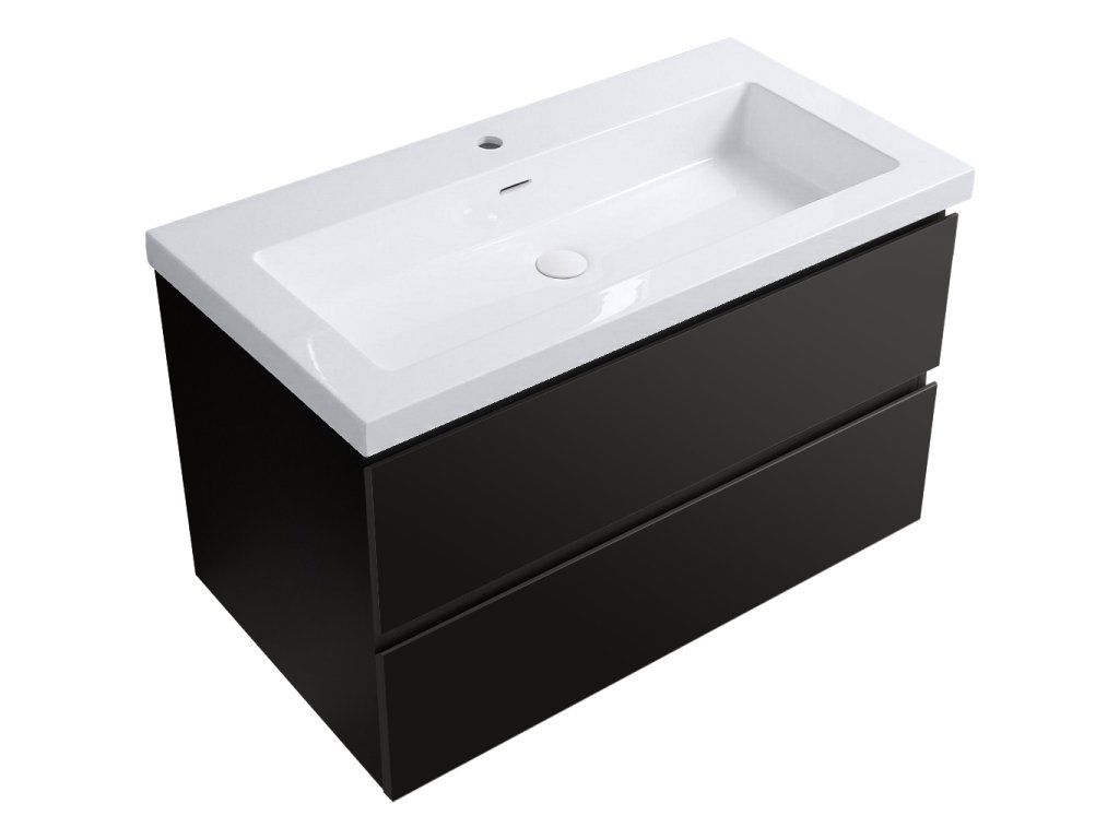 CERANO - Koupelnová skříňka Carole - černá matná + umyvadlo z lit. mramoru Ovo - bílá lesklá - 101x49,5x46,5 cm
