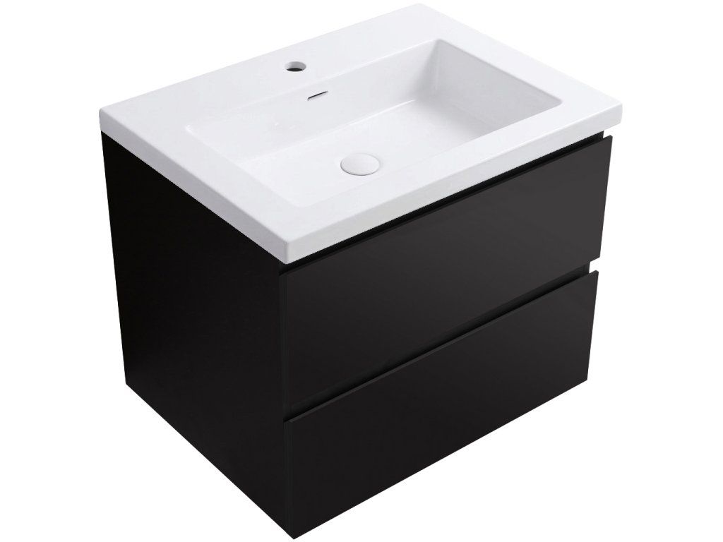 CERANO - Koupelnová skříňka Carole - černá matná + umyvadlo z lit. mramoru Ovo - bílá lesklá - 61x49,5x46,5 cm