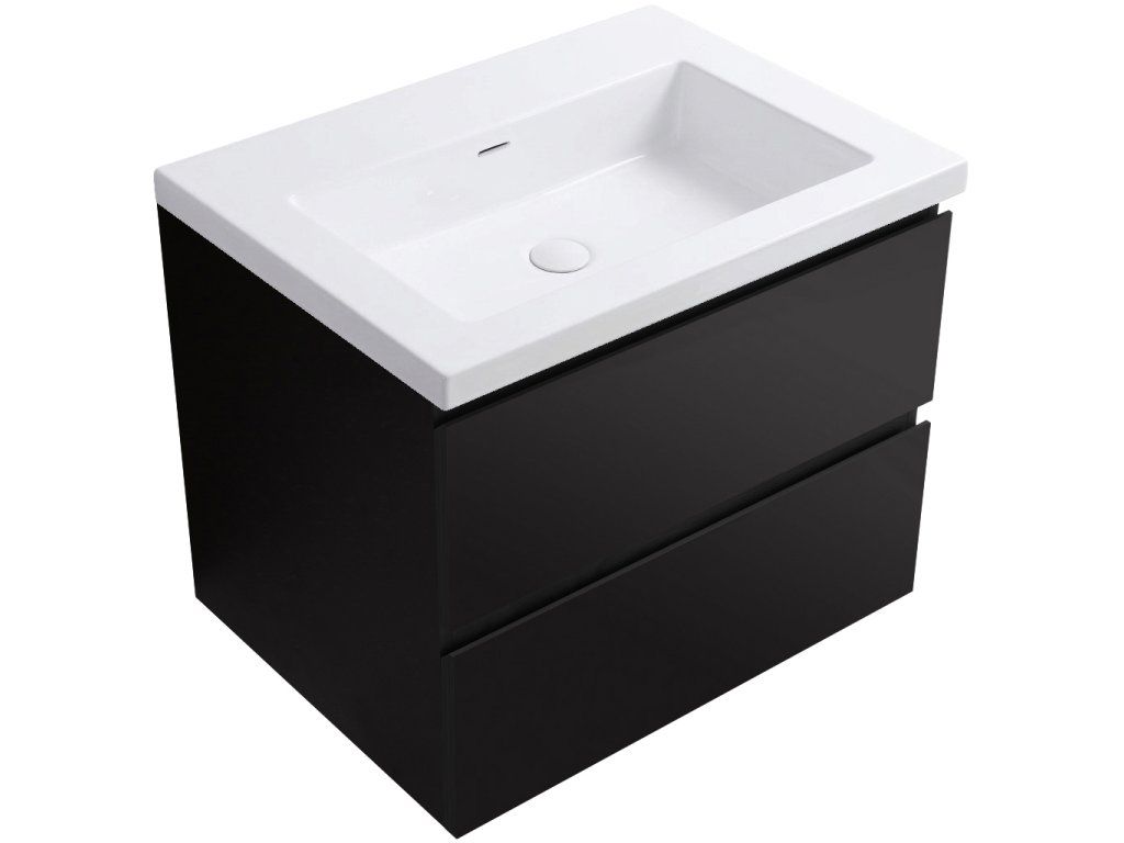 CERANO - Koupelnová skříňka Carole - černá matná + umyvadlo z lit. mramoru Ovo - bílá lesklá - 70,5x53x46,3 cm
