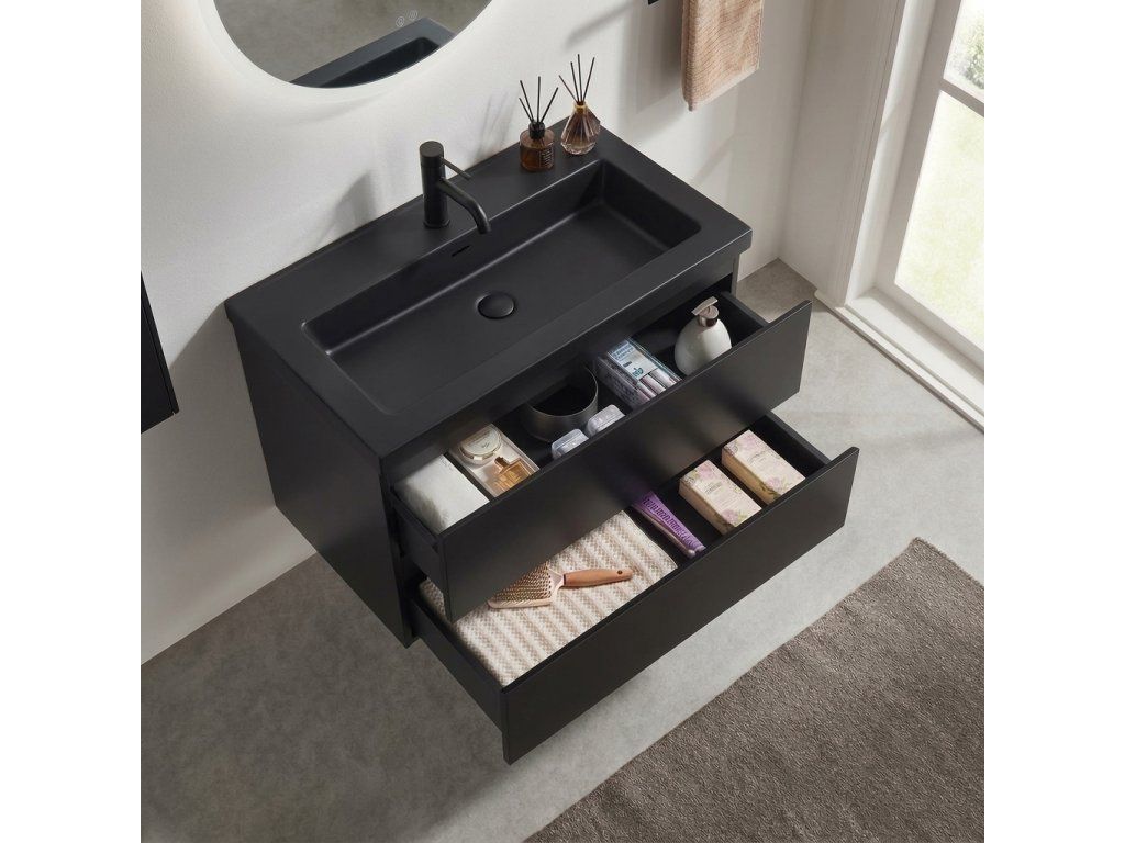 CERANO - Koupelnová skříňka Carole - černá matná + umyvadlo z lit. mramoru Ovo - černá matná - 101x49,5x46,5 cm