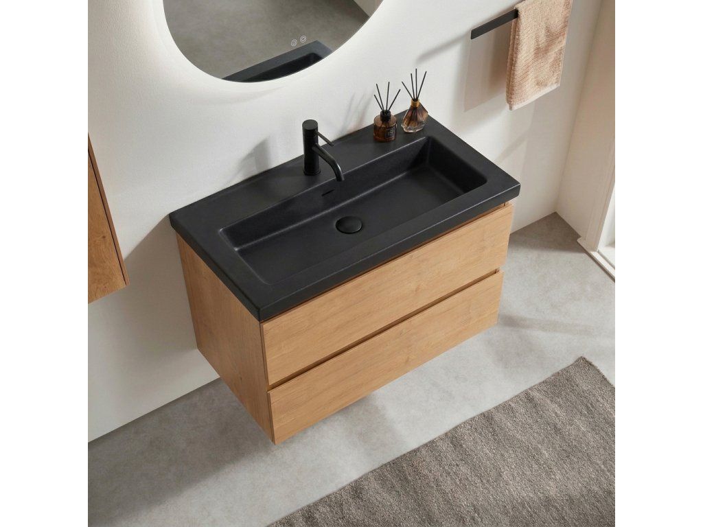 CERANO - Koupelnová skříňka Carole - dub medový + umyvadlo z lit. mramoru Ovo - černá matná - 61x49,5x46,5 cm