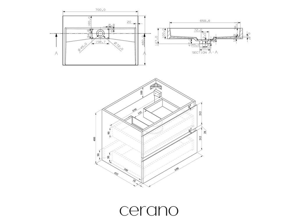 V rámci této série nabízíme širokou škálu rozměrů, abychom uspokojili různé potřeby našich zákazníků. Všechny koupelnové skříňky značky Cerano jsou navrženy tak, aby byly plně kompatibilní s deskami a umyvadly Cerano ve stejných rozměrech, což zajišťuje bezproblémovou instalaci a dokonalé sladění.