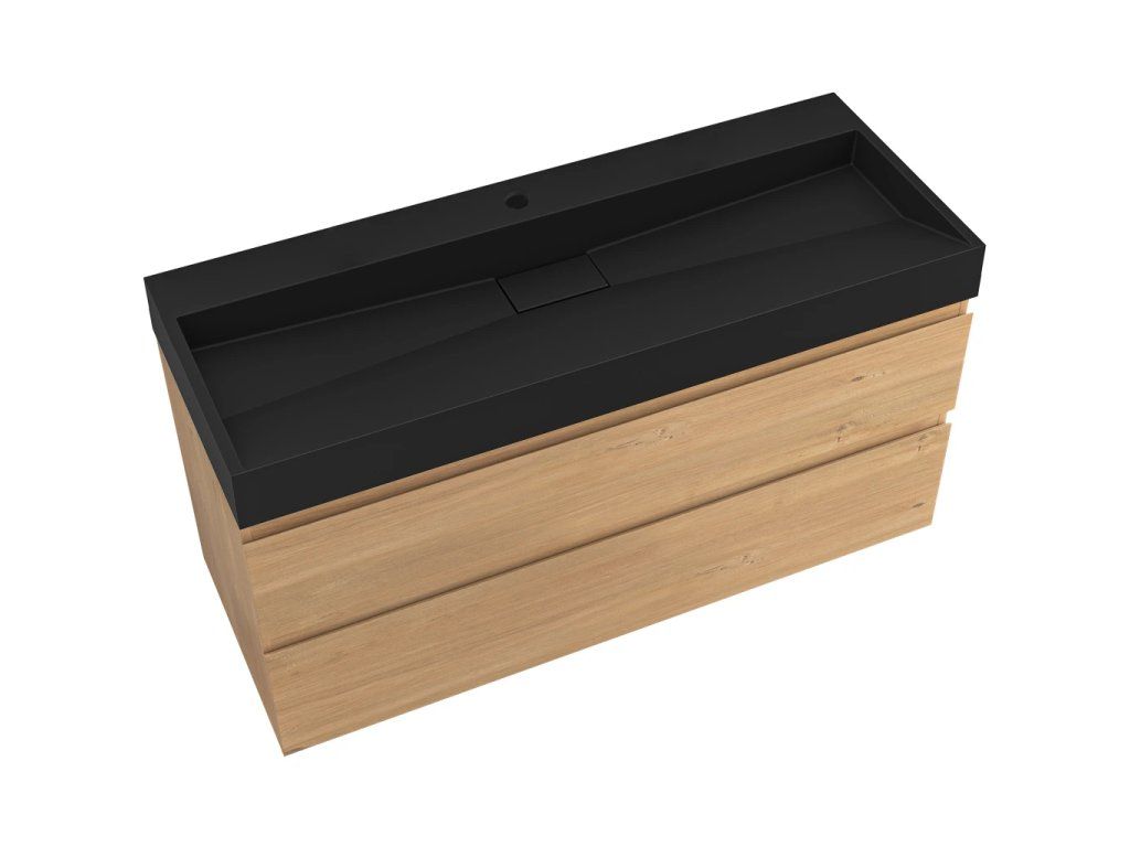 CERANO - Koupelnová skříňka Carole - dub medový + umyvadlo z lit. mramoru Vita - otvor - černá matná - 100x58x46 cm