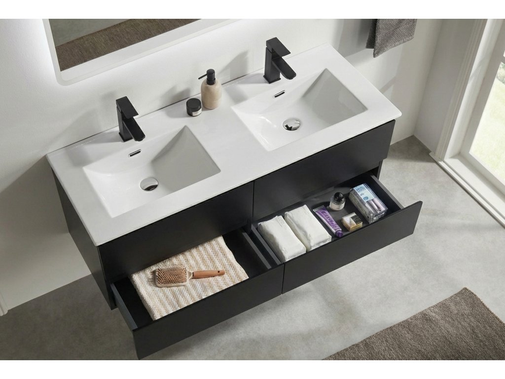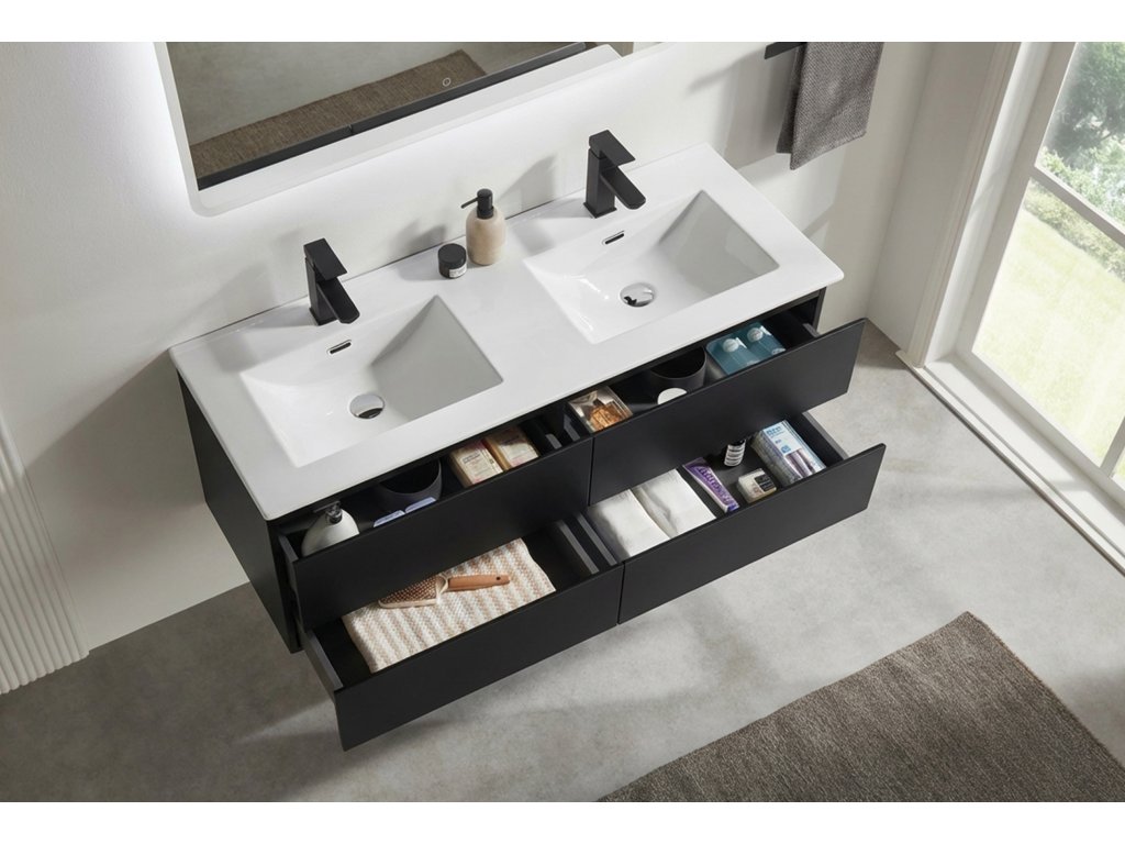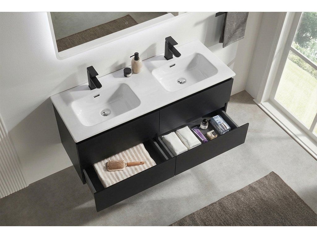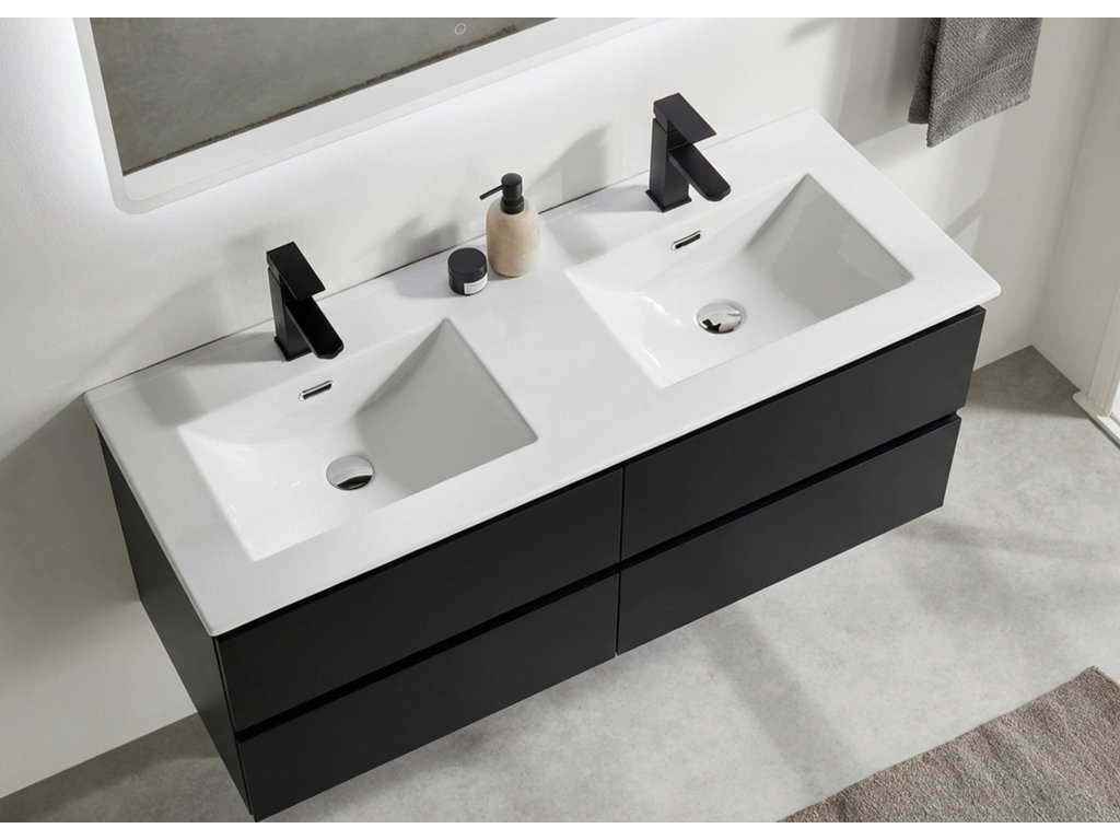 CERANO - Koupelnová skříňka pod umyvadlo Carole + keramické dvojumyvadlo Novo - černá matná - 121x49,5x46,5 cm